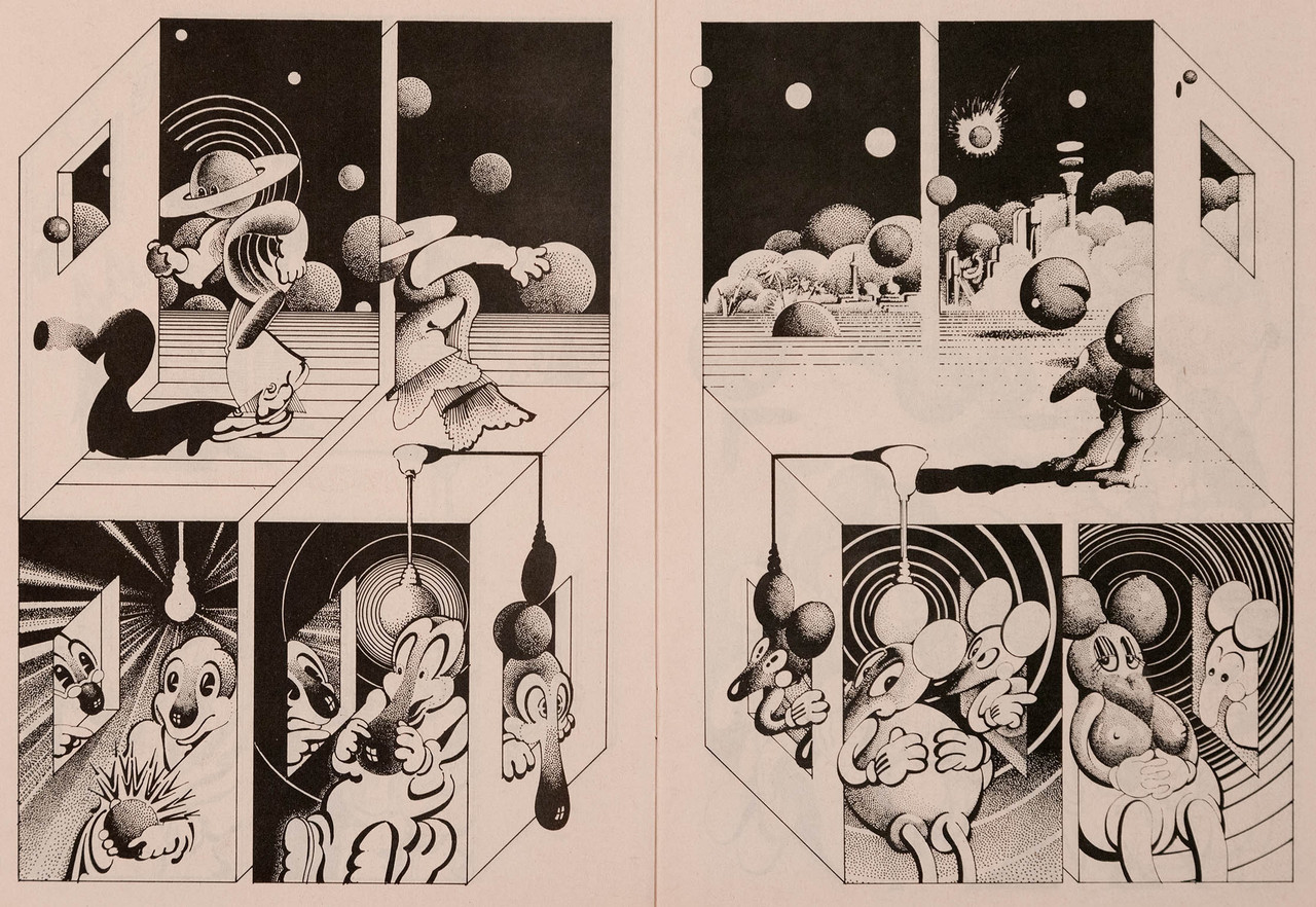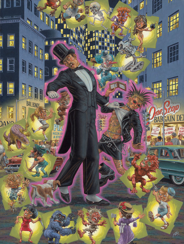 Wha? No Arnold Roth? Charles Adams? Gahan Wilson? National Lampoon stuff. Heavy Metal magazine stuff. a very special place for Lil Annie Fanny and relatedly . . especially MAD Magazine! Car-toons. Surf-toons. Cracked Magazine. Wonder if, Edward Lear . . ??? well. maybe later in the book. no matter. I luv'd ALL these artists, comics, comix plus a way lot more. MAD Magazine and Edward Lear being ground central for me artwise aaand yeah, otherwise. no doubt. jus like (SST punk era pre AND post Blue Chip) Raymond Pettibon, Pushead, Robert Williams, Gee Vaucher & CRASS, Winston Smith and Shawn Kerri. Don't make me go into Wacky Packs and Ed Big Daddy Roth!! I still have my childhood wooden cigar box full of those stickers n trading cards. but whoa! hold the show! now I'm thinkin about my early art vs comics vs comix vs art stuff. once again living, lurking ALIVE and deep in my very own Origin Issue, finding me, a lil LA kid sitting on the floor of Hennessey & Ingalls and yeah . . hoping not to be kicked out and wildly eating this stuff up