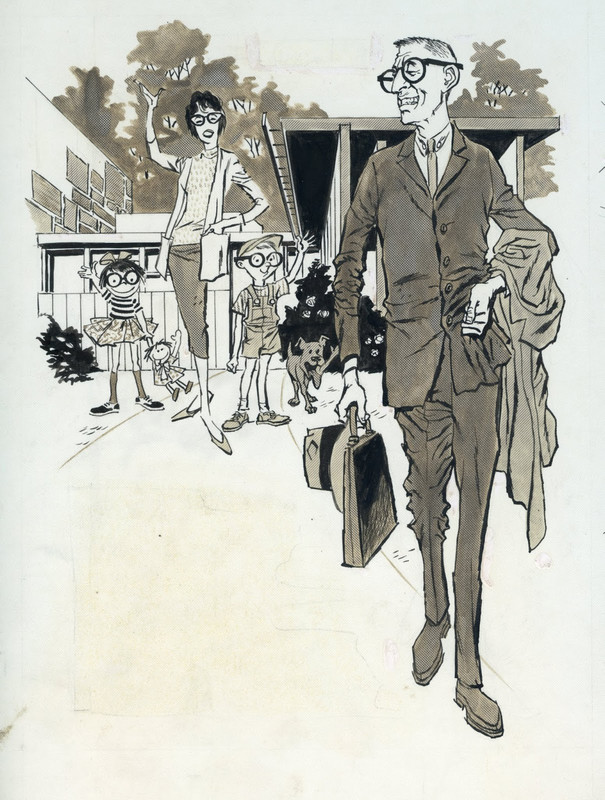 a Peter Bagge style drawing, Bagge of the edgy angry subpop grunge punk adrenalin-fueled rock n roll comix n album art set while post modern irreverent n funny flippin (off) the classic 50s 60s comics n cartoons script